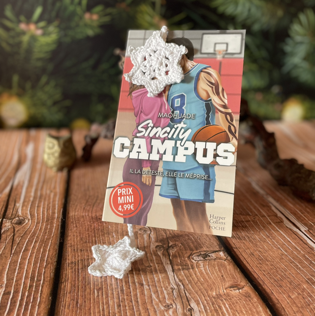 Deux étoiles flocons blancs, délicatement crochetés, racontent la magie des soirées d’hiver et la douceur des pages feuilletées. Leur bordure, blanche, dorée ou argentée, scintille comme un petit éclat de neige ou de lumière de Noël. Un marque-pages tendre et féerique, compagnon idéal de tes lectures au coin du feu.