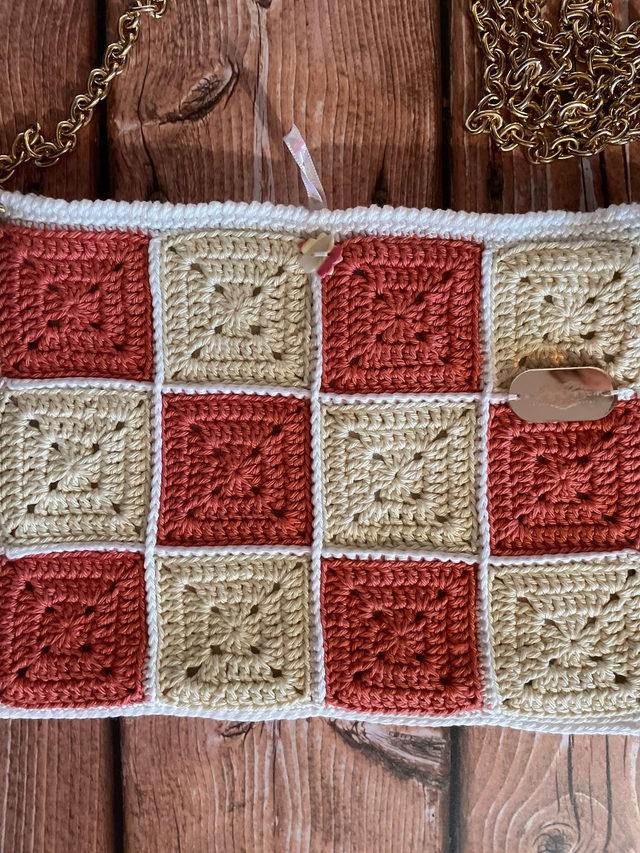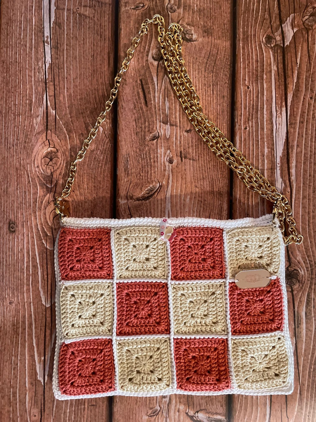 Le sac Asagi Bag est une pochette au charme japonais, entièrement crochetée à la main. Ses tons corail et écru évoquent la lumière d’un matin à Kyoto. Doublée et thermocollée, elle se porte avec son anse dorée et son bouton façonné à la main, pour une allure raffinée et unique.